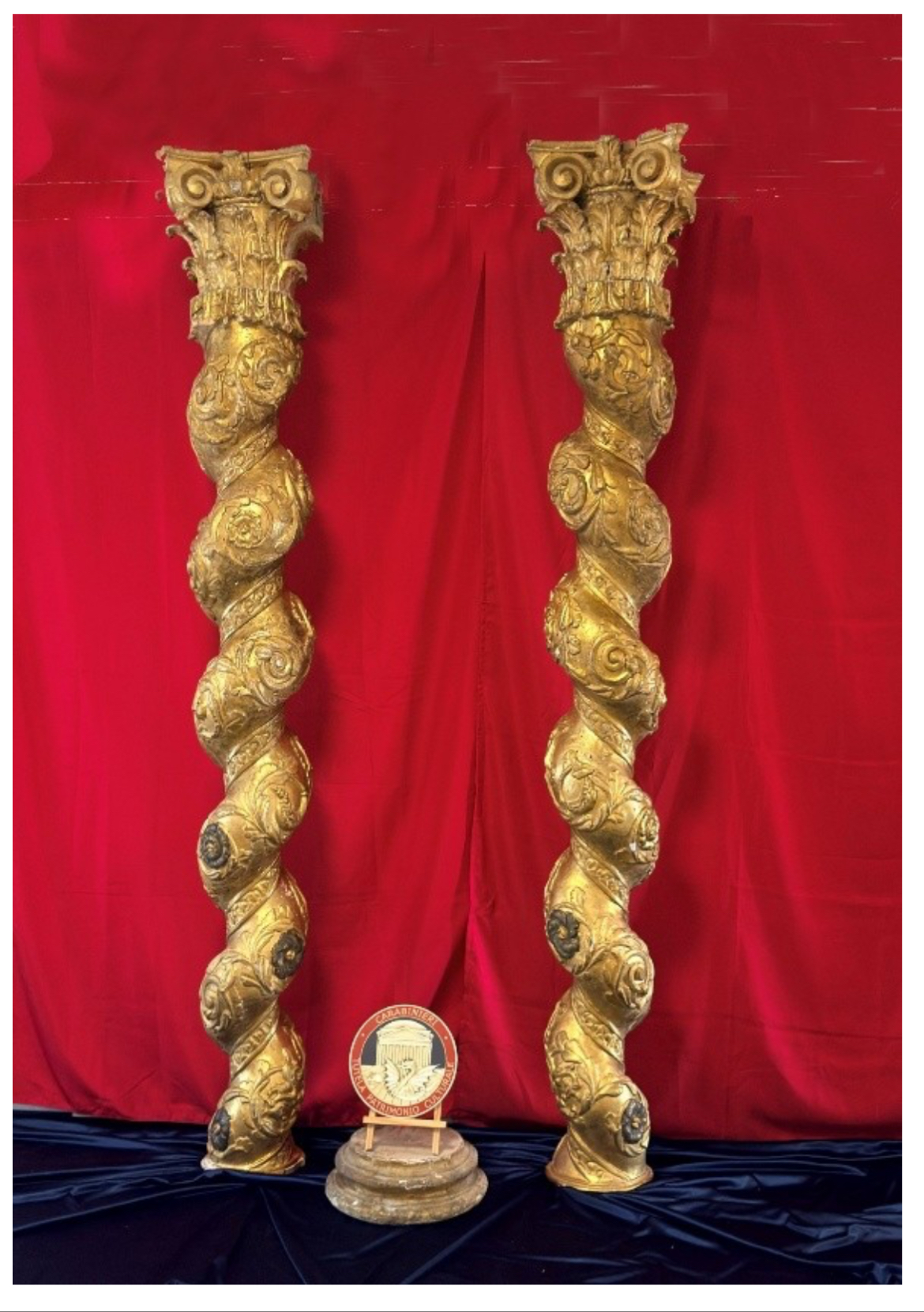 Questa mattina alla presenza del Parroco di Tossicia, delle AutoritΓ  civili e militari e della comunitΓ  dei fedeli, sono state riconsegnate e verranno successivamente ricollocate nell’altare maggiore della Chiesa di Santa Rufina nel Comune di Tossicia (TE) una coppia di colonne tortili in legno intagliato, dorato in foglia d’oro e risalenti al XVII secolo, asportate circa un ventennio fa da quel luogo di culto e recuperate dai Carabinieri del Nucleo Tutela Patrimonio Culturale di L’Aquila.