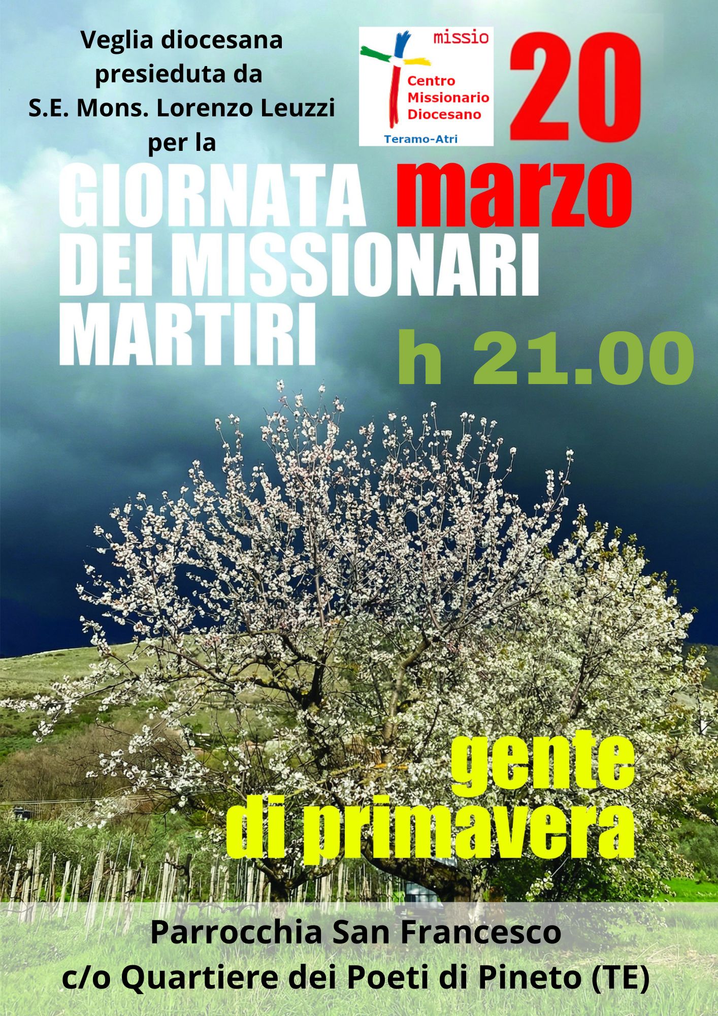 Per vivere comunitariamente questo spirito di preghiera e memoria, è stata organizzata una Veglia Diocesana presieduta dal nostro vescovo S.E. Mons. Lorenzo Leuzzi, il 20 marzo, alle ore 21.00, presso la Chiesa San Francesco del Quartiere dei Poeti di Pineto.