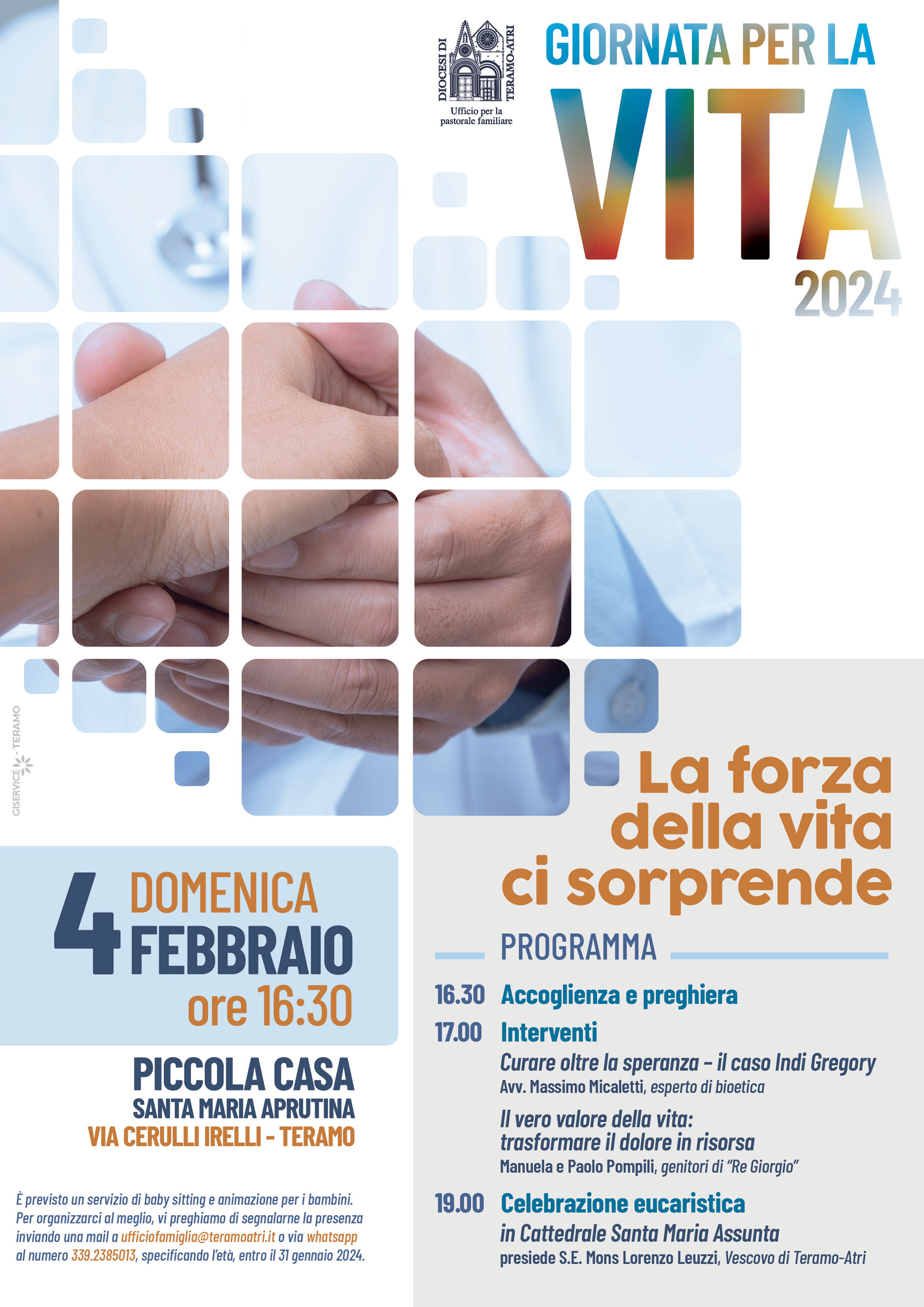 Giornata per la Vita 2024 3 febbraio, Fondazione Maria Regina Scerne di Pineto 4 febbraio, Piccola Casa Santa Maria Aprutina, Teramo