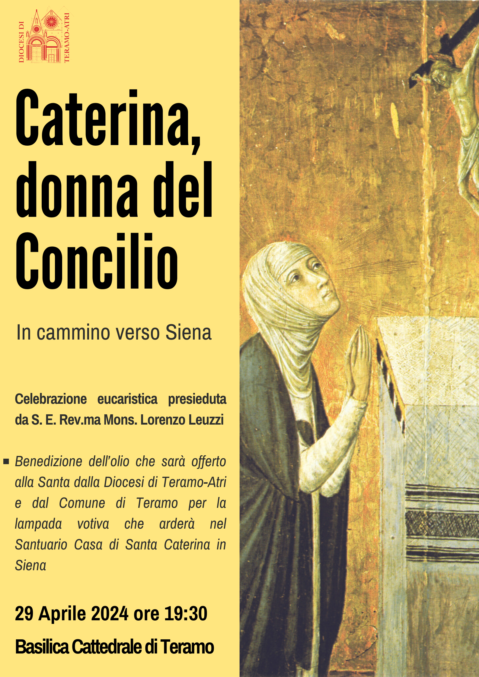 Lunedì 29 aprile, giorno della festa liturgica di Santa Caterina da Siena, durante la Santa Messa delle ore 19:30 nel Duomo di Teramo, Sua Eccellenza Monsignor Lorenzo Leuzzi ha benedetto l’olio che è stato offerto dalla città di Teramo, per le mani del sindaco Gianguido D’Alberto, a Santa Caterina nel giorno di domenica 5 maggio a Siena, nell’ambito delle celebrazioni cittadine per la compatrona d’Italia e d’Europa.