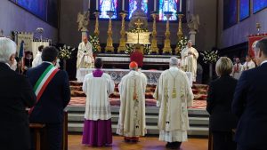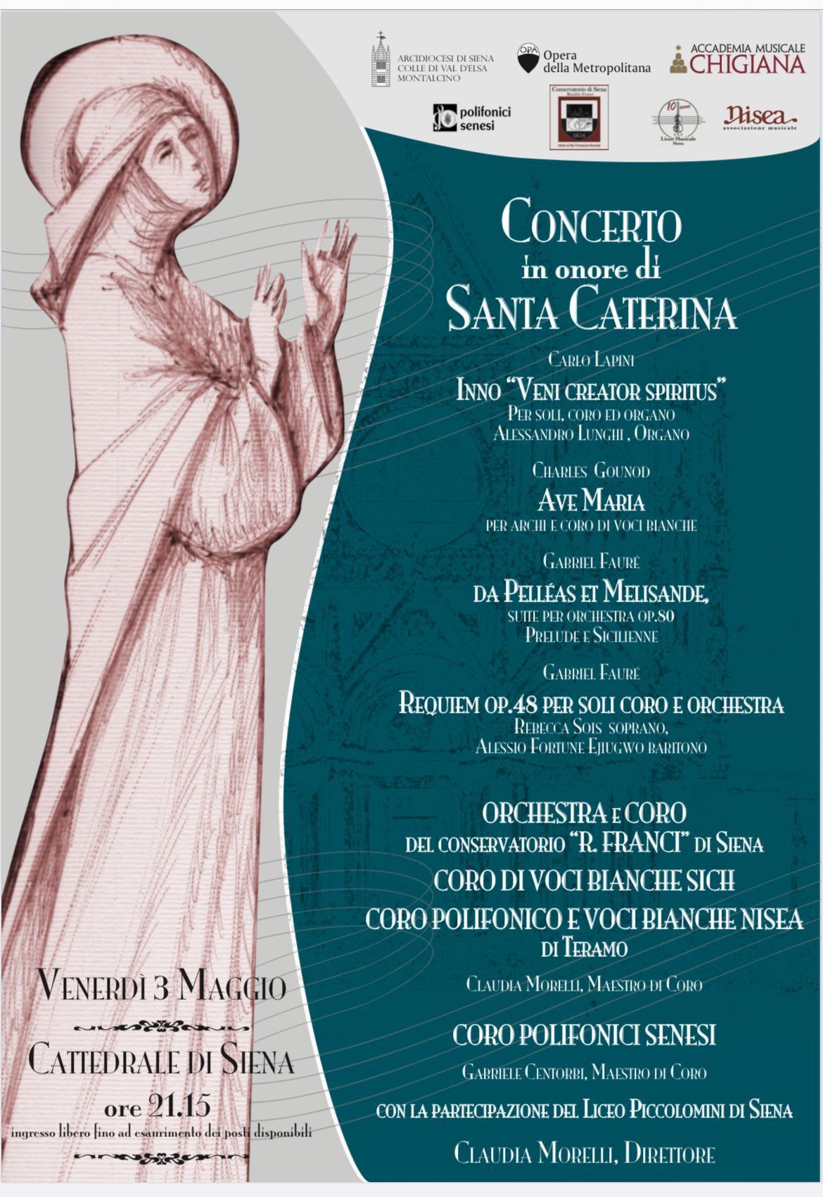 Il vescovo Lorenzo Leuzzi e il sindaco di Teramo sono giunti nella città toscana già venerdì 3 maggio, al concerto nella Cattedrale di Siena eseguito dal coro e orchestra del conservatorio “Franci” di Siena, dai cori polifonici senesi insieme al coro “Nisea” di Teramo e dai due cori di voci bianche, il “SICH” dell’accademia chigiana e il “Nisea” sempre di Teramo.