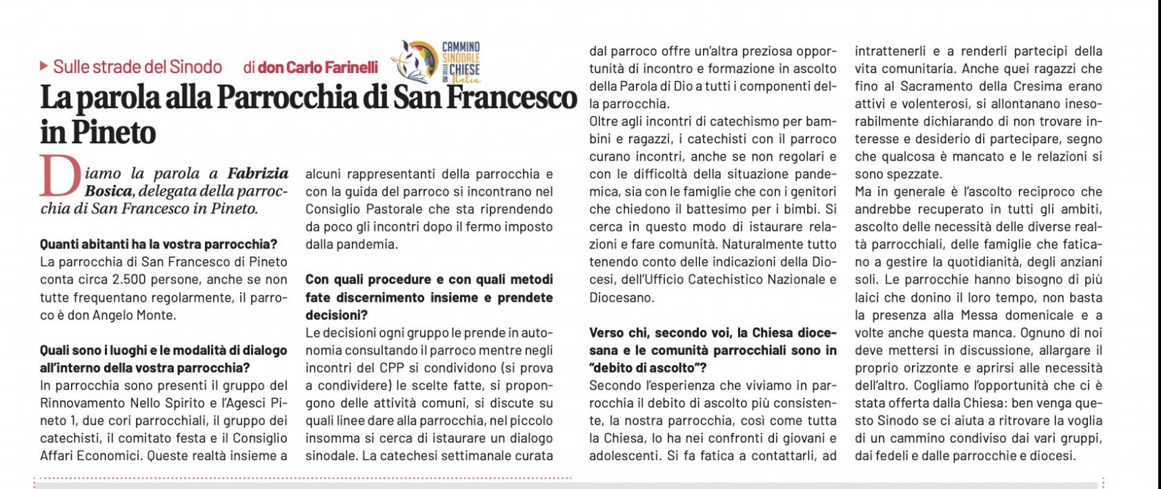 Sulle strade del Sinodo. La parola alla Parrocchia di S.Francesco in Pineto